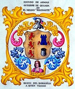 Escudo de armas de Gutiérrez Quijada con el busto del borgoñón a quien venció