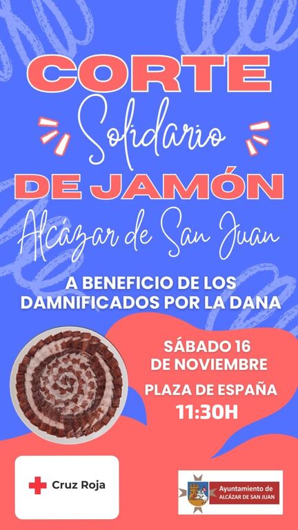 La Plaza de España de Alcázar de san Juan será este sábado escenario de una novedosa iniciativa solidaria: EL CORTE DE JAMÓN. Una actividad, promovida por la Asociación Nacional de Cortadores de Jamón, que llega a esta localidad, al igual que a otros municipios de la geografía española, con la intención de recaudar fondos a beneficio de los damnificados por la DANA, tanto de Valencia como de Castilla-La Mancha o Andalucía.
