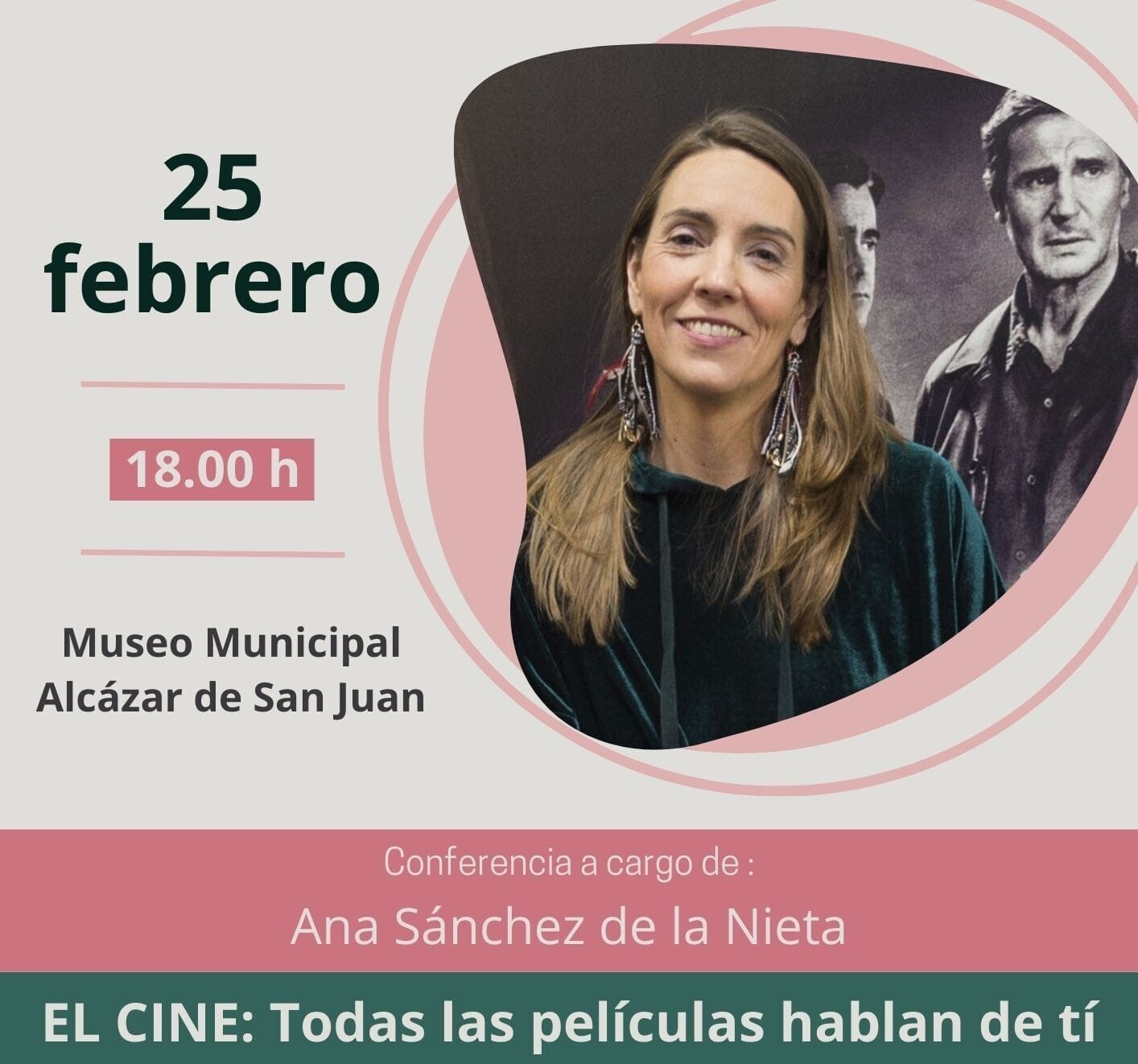 La Asociación Cultural y Social “El Sosiego” de Alcázar de San Juan prosigue su temporada 2022-2023, con la conferencia “El Cine: Todas las películas hablan de ti”, a cargo de Ana Sánchez de la Nieta, licenciada en Periodismo, crítica cinematográfica y colaboradora habitual en medios de comunicación, actualmente dirige el área audiovisual de Aceprensa y es profesora asociada de la Universidad Rey Juan Carlos en Arte y Humanidades.