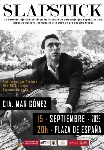 La Plaza de España de Alcázar de San Juan espera ya la llegada de un numeroso público para poder disfrutar del teatro de calle, que dentro de la programación de otoño del Patronato Municipal de Cultura, llegará este viernes, 15 de septiembre, a las ocho de la tarde, con el espectáculo “Slapstick”, un cortometraje cómico sin pantalla sobre un personaje que espera un tren.