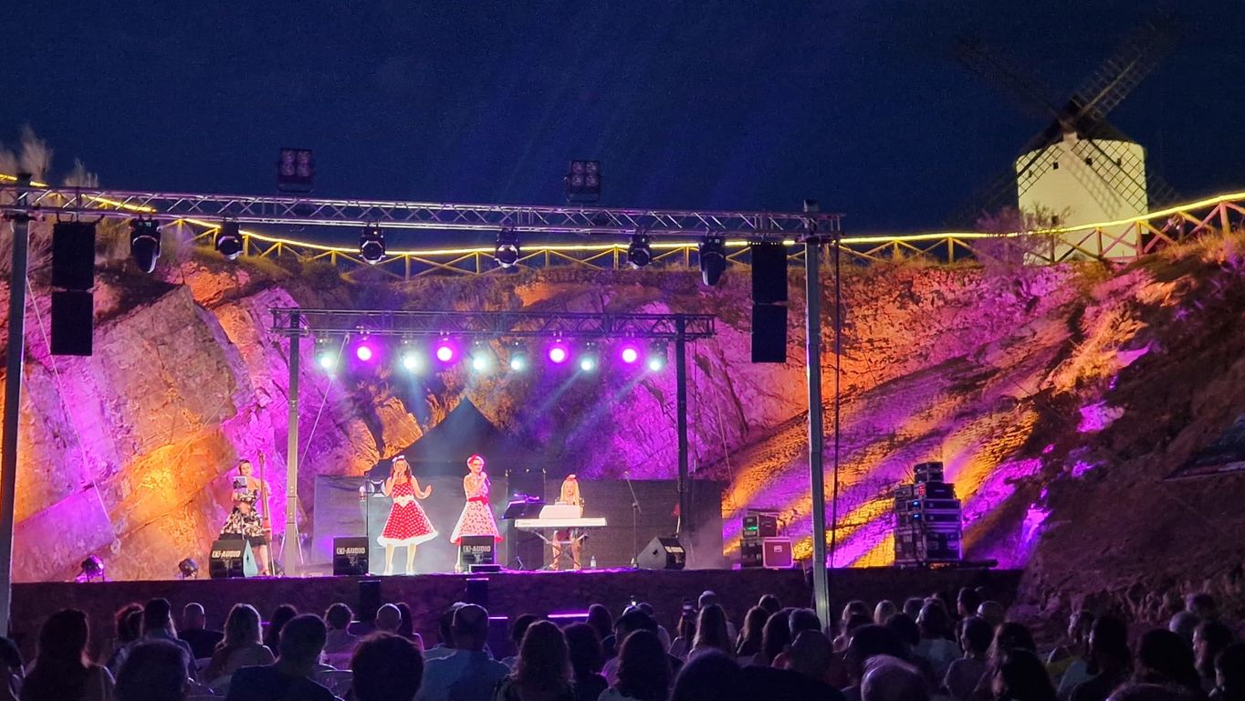 El Auditorio "Corazón de la Mancha", ubicado en una de las canteras del cerro de San Antón de Alcázar de San Juan, con los molinos de viento al fondo, ha vuelto a convertirse en Escenario de Verano durante el fin de semana, con las actuaciones de ‘Trío Zaniah’ y ‘Glam Dolls Band’.