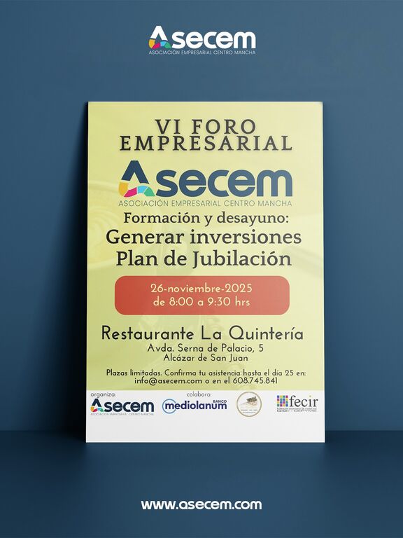 La participación es gratuita pero las plazas son limitadas, por lo que desde la organización se recomienda confirmar la asistencia con antelación. El foro está impulsado por ASECEM (Asociación de Empresarios Centro Mancha), que con este tipo de iniciativas pretende seguir ofreciendo espacios útiles para la formación, el asesoramiento y la conexión empresarial en la comarca.