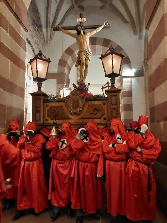 Responsables de la Hermandad explican que, a estas horas del miércoles, ya está todo preparado para rezar el santo viacrucis. Si llueve a la hora prevista de la procesión (22,30 horas), se celebrará en el interior del templo; y si no llueve, se rezará en procesión, acompañando a la imagen del Cristo, por las calles de siempre (itinerario habitual: Parroquia de santa Quiteria, La Feria, Plaza de la Aduana, Rondilla Cruz Verde, General Alcañiz, Emilio Castelar, Plaza de España, Plaza de santa Quiteria y Parroquia).