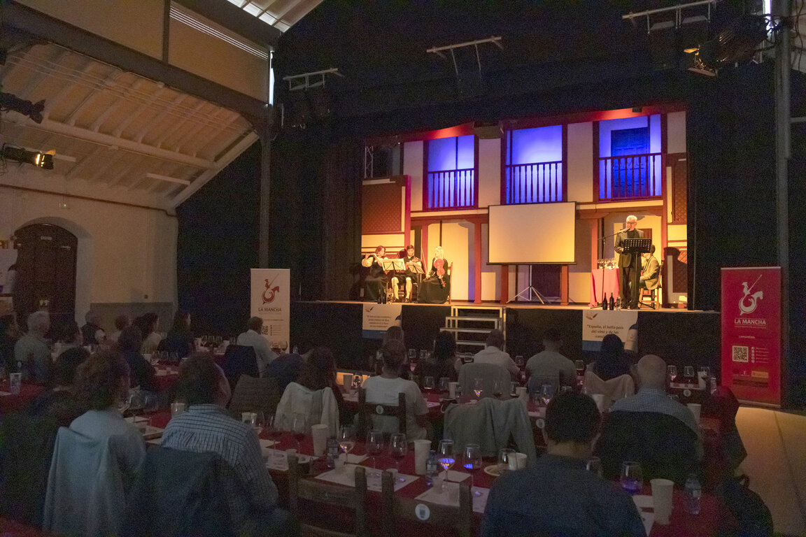 Para ello, se analizaron sus orígenes en el Bajo Imperio Romano y Edad Media hasta llegar al conocido Siglo de Oro, donde se centraron en el impacto y la tradición cultural del vino en la sociedad castellana de los siglos XVI y XVII. En ese singular “viaje en el tiempo”, los asistentes cataron vinos similares a los que pudiera haber bebido Cervantes y sus contemporáneos, comparándolos después con vinos jóvenes DO La Mancha (blanco Airén y tinto Tempranillo) junto a un crianza elaborados en la actualidad. Todo ello además aderezado con textos adaptados de poetas como Quevedo, Lope de Vega, Góngora o Quevedo, sin olvidar la mención al propio Cervantes, contando con la interpretación colaborativa de los actores de la compañía teatral Fundación Siglo de Oro de Madrid. En palabras de su director ejecutivo, Rodrigo Arribas, “Cervanvino 2025 ha sido visto para la fundación desde el primer momento como una gran oportunidad ya que en los textos de los clásicos del Siglo de Oro la presencia del vino ha sido referencial y siempre ha existido esa vinculación inherente”.