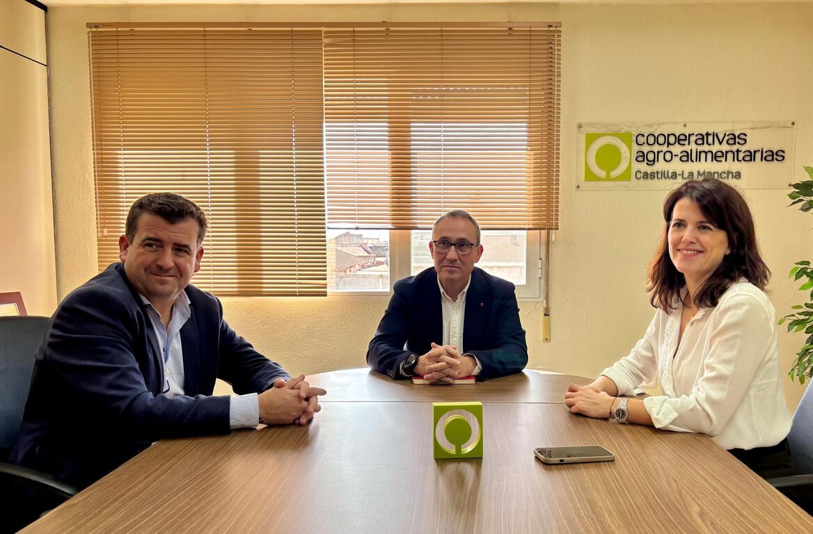 María Jesús Pelayo, vicepresidenta de la Diputación de Ciudad Real, y Ricardo Chamorro, diputado Nacional de VOX, portavoz de agricultura en el Congreso de los Diputados, se han reunido esta mañana en Alcázar de San Juan con Juan Miguel del Real, director de Cooperativas Agro-alimentarias Castilla-La Mancha, donde han mostrado el apoyo al sector agrario y han estado compartiendo la posibilidad de diversas iniciativas para reactivar el mundo rural, promocionar nuestro productos agroalimentarios, fomentar la rentabilidad agraria, el relevo generacional y el desarrollo del sistema cooperativo como un sistema esencial para dinamizar, crear empleo y riqueza en nuestros pueblos, luchando contra la despoblación.
