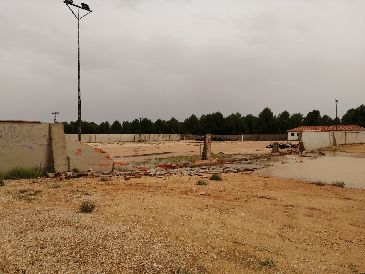 La DANA tira parte de la pared del campo de fútbol de Arenales de San Gregorio