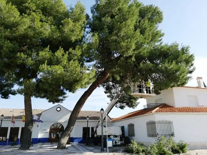 Dicha obra medioambiental está siendo llevada a cabo por la empresa "Viveros Ferca", que además de la poda "realizarán diversos trabajos como la creación de las llamadas ventanas, para que las copas de los pinos sigan una dirección y puedan seguir desarrollándose, sin peligro para los alrededores. Además, también se va a actuar en una de las copas de los pinos que empieza a caer sobre la carretera CR-1222, para evitar a su vez que un futuro, pueda producirse alguna caída de rama que pueda producir algún accidente", aseguró el alcalde.