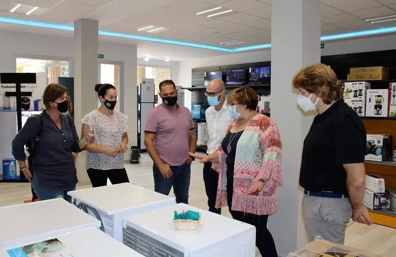 Acompañada del alcalde, Pedro Ángel Jiménez, y del delegado provincial de Economía, Empresas y Empleo, Agustín Espinosa, Olmedo ha visitado un par de empresas locales beneficiarias de estas ayudas. En primer lugar, han visitado un establecimiento de la cadena “Tien 21” dedicado a la venta de electrodomésticos que cuenta con tres empleados, y a continuación, las instalaciones de “Ebanartis”, empresa familiar con más de medio siglo de tradición en el sector de la madera que se dedica a la realización y ejecución de proyectos de decoración y a la fabricación y restauración de muebles. Al frente de la empresa están la ingeniera de edificación y diseñadora industrial Águeda Serrano y el ebanista y artesano Jesús García.