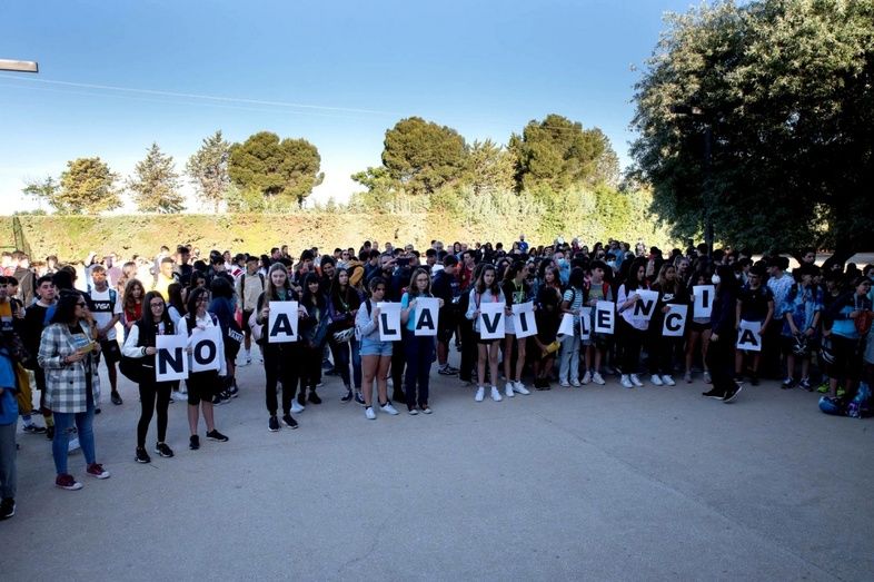 Cientos de estudiantes, docentes, padres y madres de alumnos y vecinos en general, se han concentrado esta mañana en el patio del IES Vicente Cano de Argamasilla para mostrar su rechazo a cualquier tipo de violencia y su solidaridad con los profesores y profesoras del centro, tras la agresión padecida en el día ayer.