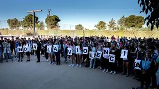 Cientos de estudiantes, docentes, padres y madres de alumnos y vecinos en general, se han concentrado esta mañana en el patio del IES Vicente Cano de Argamasilla para mostrar su rechazo a cualquier tipo de violencia y su solidaridad con los profesores y profesoras del centro, tras la agresión padecida en el día ayer.