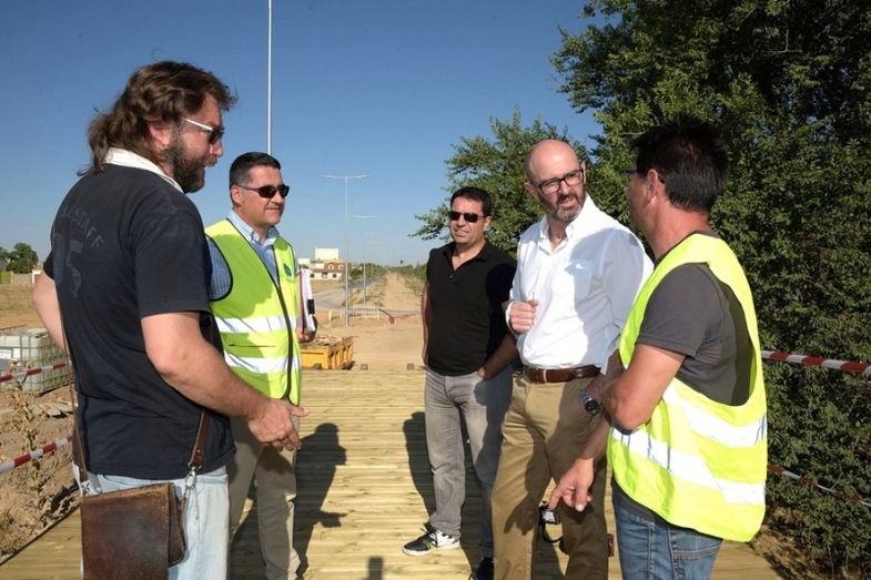 El alcalde, Pedro Ángel Jiménez, junto a los concejales de Cultura y Medio Ambiente, José Antonio Navarro y Enrique Peces, respectivamente, visitaron las obras de instalación de la pasarela, acompañados del director técnico de la misma, Eduardo Rubio, de la empresa adjudicataria Grupo TREBOL 5 - Servicios de Ingeniería y Arquitectura S.L.; durante la cual el alcalde destacaba que esta nueva infraestructura forma parte de un proyecto “muy bonito”, dentro del cual se han reforestado más de 200 árboles en toda la vía verde y se irá completando con mobiliario urbano, siendo la próxima inversión un parque de calistenia.