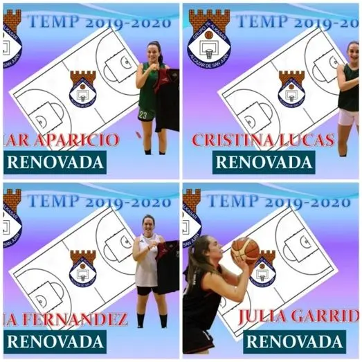 En estos últimos días, el equipo femenino ha hecho oficial la renovación e incorporación de cuatro jugadoras. Julia Garrido Iniciamos una canterana que da todo por su club. Este año asciende al primer equipo femenino con la ilusión de una principiante. Ana Fernández. Otra renovación la pivot confirma su compromiso con el equipo y con el club. Espera buena temporada. Cristina Lucas. Jugadora junior que se hace mayor. Jugadora todo terreno que aportará mucha intensidad al equipo. Mar Aparicio. A pesar de su corta edad tiene muchos minutos importantes jugados, gran tiradora.