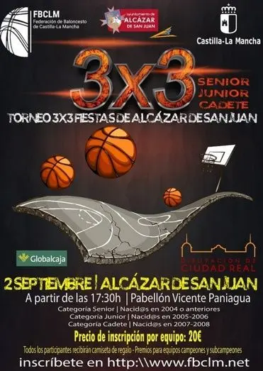 Desde hoy mismo queda abierto el plazo de inscripción para el Torneo 3X3 de baloncesto que se llevará a cabo este próximo viernes 2 de Septiembre en Alcázar de San Juan. Aunque en primera instancia la competición se iba a desarrollar el sábado, por necesidades de la instalación se ha tenido que adelantar en un día la celebración del mismo.
