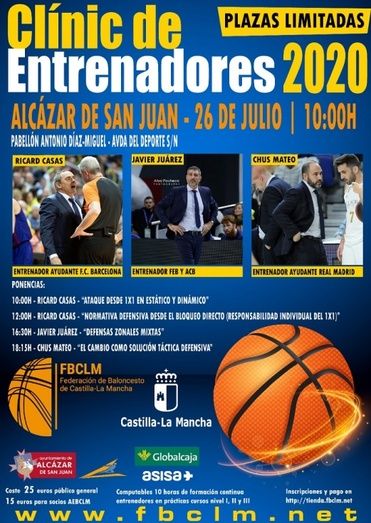 El próximo domingo 26 de julio en el pabellón Antonio Díaz-Miguel de Alcázar de San Juan (Avda. del Deporte s/n) a partir de las 10:00 horas dará comienzo el “Clínic de Entrenadores” anual que organiza la FBCLM y será uno de los mejores eventos formativos del panorama nacional.