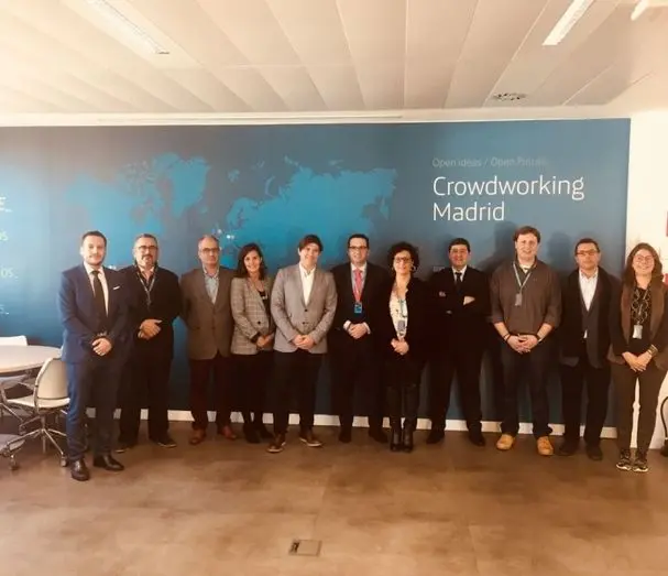 El alcalde de Campo de Criptana, Antonio José Lucas-Torres López-Casero, junto a una amplia representación del ayuntamiento, han visitado el espacio de Crowdworking de Telefónica en Madrid, acompañados de Alberto Romero, Jefe del área de empresas de CLM y Antonio Peco, Jefe de la oficina de Empresas de Ciudad Real.