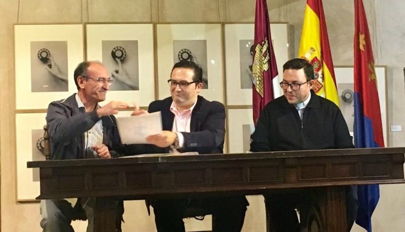 El alcalde de Campo de Criptana, Antonio Lucas-Torres, junto a los párrocos del municipio, Juan Carlos Camacho y Trinidad Gallego, ha suscrito un convenio de colaboración económica para la finalización de las obras de restauración de la ermita de la Concepción. Una inversión de 45.000 euros que se materializaba con la firma pública del documento ante representantes de la comunidad parroquial de la localidad.