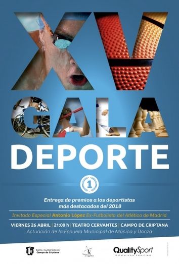 El próximo viernes, día 26 de abril, se celebrará en el Teatro Cervantes de Campo de Criptana la XV edición de la Gala del Deporte, organizada por el Ayuntamiento de Campo de Criptana a través de la Concejalía de Deportes.
