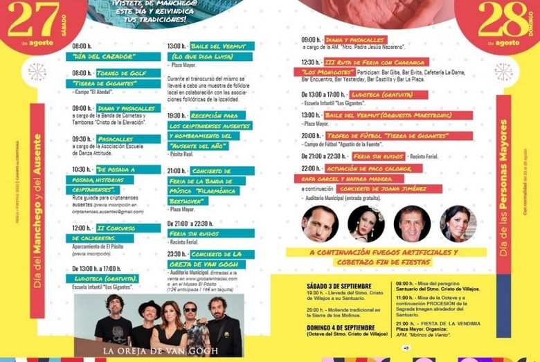 El Ayuntamiento de Campo de Criptana ha destinado este año un presupuesto de 200.000 euros para que los vecinos puedan disfrutar de unas fiestas “con normalidad”, sin restricciones, y con todo lo que las hace grandes: la fiesta Yé-Yé, el Baile del Vermú, los conciertos, los concursos gastronómicos, los espectáculos infantiles y deportivos, en fin, más de 100 actividades repartidas entre los días 23 y 28 de agosto.
