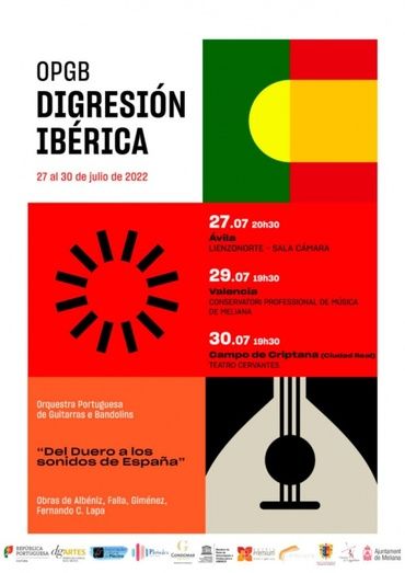 El Teatro Cervantes de Campo de Criptana acogerá este sábado a la Orquesta portuguesa de guitarras e bandolins que ofrecerá el espectáculo “Digresión Ibérica: Del duero a los sonidos de España”, con obras de Albéniz, Falla, Giménez y Fernando C. Lapa. Será el día 30 de julio a partir de las 19:30 h.