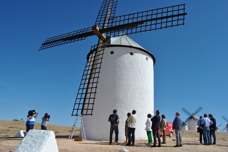 Así, en todos los molinos del conjunto se están rehabilitando los ventanillos, se están aplicando tratamientos protectores de la madera; pintura exterior e interior, revisión de los elementos móviles, y la sustitución de varios juegos de aspas en aquellos molinos en los que éstas están afectadas por graves desperfectos o deformaciones importantes.