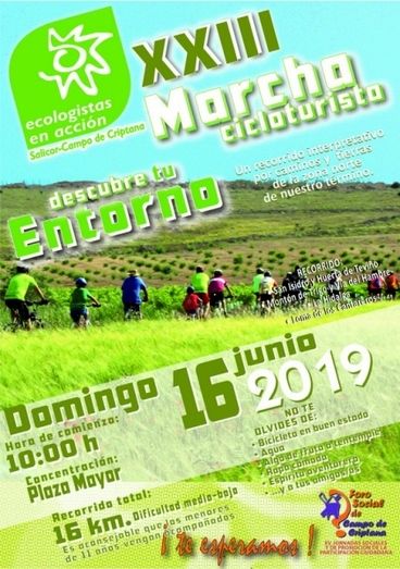 Dentro de la Programación de Actividades previstas en el año 2019, el Grupo SALICOR-Ecologistas en Acción ha organizado un año más la marcha cicloturista en bicicleta (la número XXIII) con el lema DESCUBRE TU ENTORNO.
