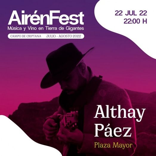 El timple, instrumento originario de Canarias que cuenta con cinco cuerdas, será uno de los protagonistas en el entorno de la Plaza Mayor de la mano de Althay Páez, quien será el encargado de hacer de la noche del viernes una noche mágica para Campo de Criptana. Se trata de un artista conocido como “el timplista moderno” que ha conseguido que su música traspase las fronteras de las Islas Canarias para darse a conocer por todo el mundo.