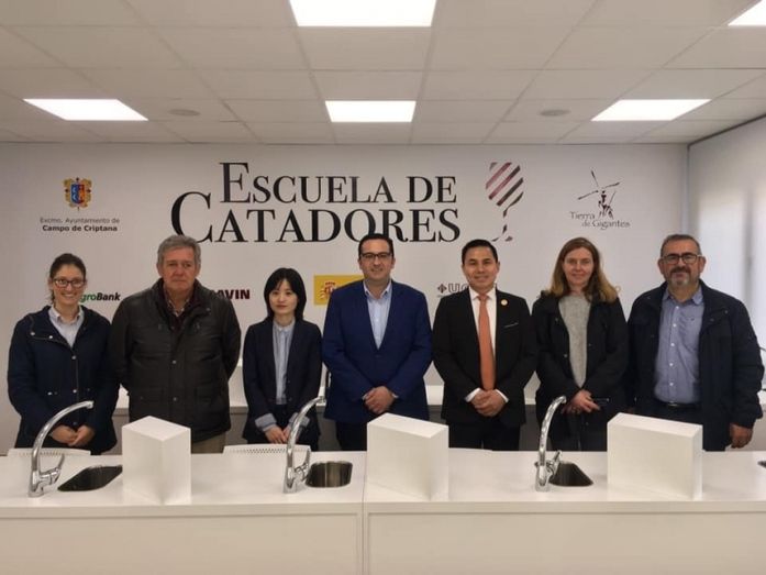 El vicepresidente ejecutivo de la Asociación General de Empresarios de Qingtian en España, Simon Rao y la directora de El Semanal, Rosalinda Tejera, fueron recibidos este lunes en Escuela de Catadores “Tierra de Gigantes” por el alcalde de Campo de Criptana, Antonio Lucas-Torres y por Hermenegildo Elvira, presidente de la cooperativa Santísimo Cristo de Villajos, donde conocieron las instalaciones y distintas actividades que se llevan a cabo para impulsar la formación del sector agroalimentario , así como la comercialización y promoción de sus productos (vino, aceite, queso, cordero…).