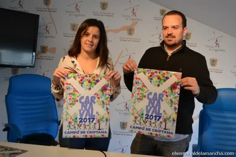 .Ana Mª Medina, concejala de Festejos, y Javier López, concejal de Cultura, han presentado esta mañana en rueda de prensa la programación de actos que se sucederán durante los próximos días con motivo de las fiestas de Carnaval en Campo de Criptana.