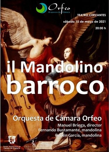 El sábado 15 de mayo, la Orquesta de Cámara Orfeo pondrá sobre el escenario del Teatro Cervantes de Campo de Criptana, el concierto Il Mandolino Barroco, bajo la dirección de Manuel Briega y con Fernando Bustamante y Rubén García como mandolinas.