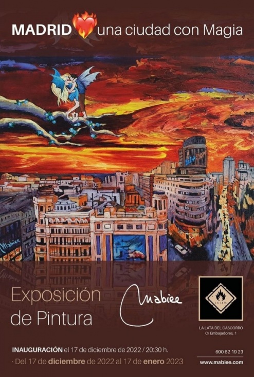 María Luisa Sánchez Bermejo, pintora internacional conocida como Mabiee, inaugurará el sábado 17 de diciembre, su nueva colección de arte y lo hará en el famoso restaurante con galería de arte, espectáculos de música en vivo y eventos culturales “La Lata de Cascorro”, ubicado en la castiza Plaza de Cascorro, calle Embajadores 1.