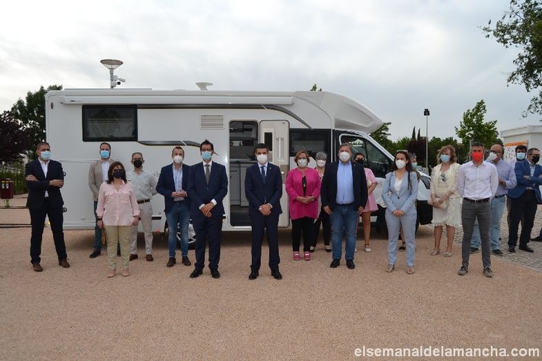 El presidente de la Diputación, José Manuel Caballero y la delegada de la Junta en la provincia de Ciudad Real, Carmen Olmedo, han acompañado este viernes al alcalde de Campo de Criptana, Santiago Lázaro y a gran parte de la Corporación municipal, en el acto de inauguración del nuevo área de autocaravanas construido en la localidad. Un servicio que ya está operativo como parte de la red de 20 áreas financiadas por la Diputación en distintos pueblos de la provincia para impulsar este tipo de Turismo , "con una red que funciona en conjunto y sin competencias, fruto de una estrategia común en materia turística".