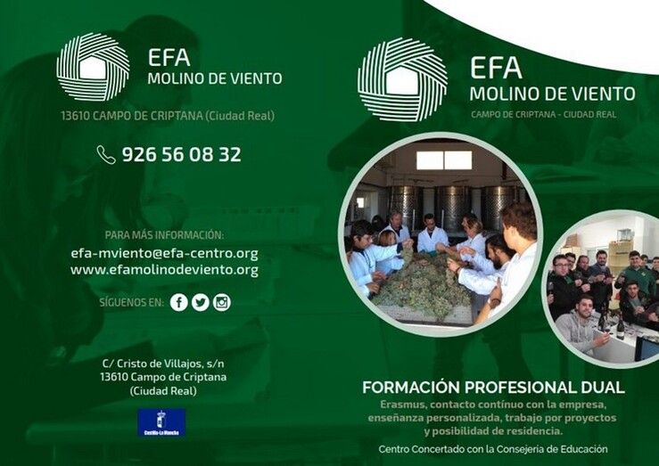 A partir del 9 de junio ya se puede solicitar plaza para el próximo curso 2020/21 en los ciclos formativos de grado medio y superior de la EFA "Molino de Viento" de CAmpo de Criptana . El plazo ordinario para presentar la solicitud, estará abierto desde el 9 de junio hasta el 2 de julio. La solicitud se puede presentar de forma telemática a través de la plataforma papás de la Consejería de Educación y puedes pasarte por la secretaría del centro, para que te ayudemos a realizarla.