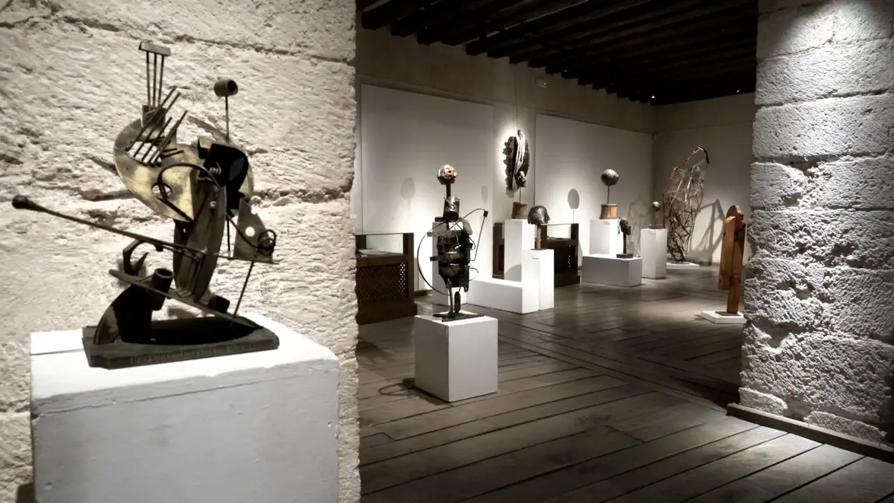 Una exposición diferente en la que cada detalle tiene un por qué, como los catálogos, fotos o elementos del taller del artista que se exhiben en las vitrinas, complementando el juego de luces, sombras y espacio creado con las propias esculturas.