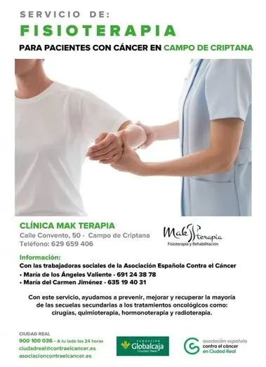 Gracias al convenio de colaboración que se suscribió el mes pasado entre la Fundación Globalcaja Ciudad Real y la Asociación Española contra el Cáncer, esta última ha podido crear un nuevo servicio de fisioterapia en Campo de Criptana.