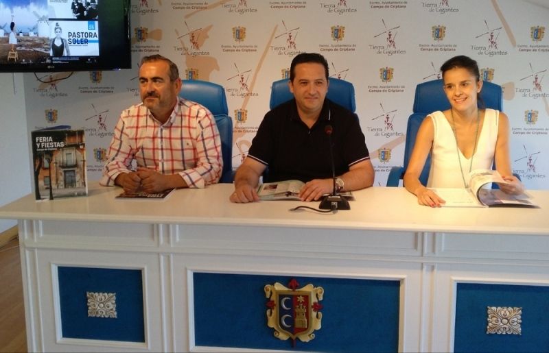 El alcalde de Campo de Criptana, Antonio Lucas-Torres, junto a los concejales de Festejos y Deportes, Ana Medina y Manuel Carrasco respectivamente, ha presentado la programación diseñada con motivo de la Feria y Fiestas del municipio en honor al Santísimo Cristo de Villajos y que tendrán lugar del 23 al 28 de agosto.