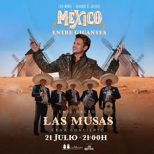 El cantante criptanense Luis Muñoz ofrecerá este jueves, 21 de julio, en el restaurante Las Musas de Campo de Criptansa, un concierto único en un entorno único, “México entre Gigantes”, en el que los comensales que asistan a la cena podrán disfrutar no solo de una degustación de productos típicos manchegos y mexicanos, sino también de la música más popular y bella de México en la que Luis Muñoz pondrá la voz y el grupo de mariachis Charros de Jalisco la música.