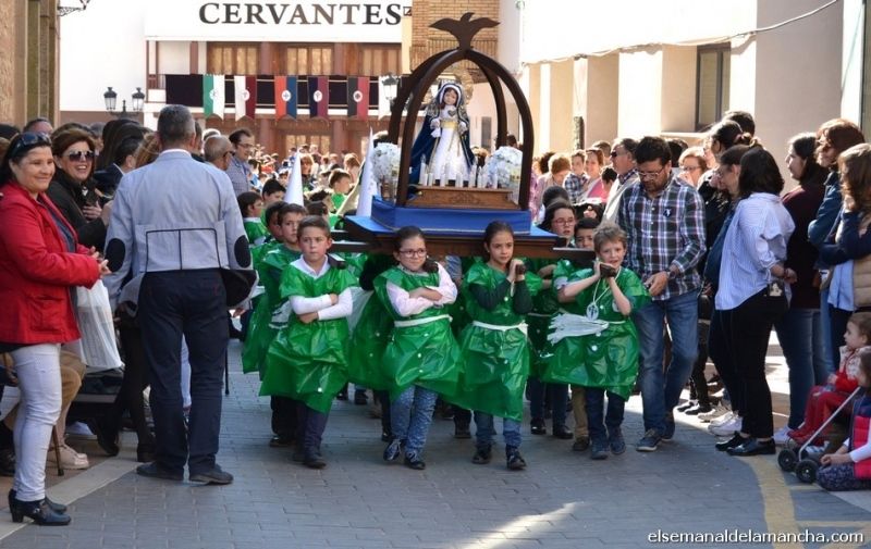La denominada “Semana Santa Chica” ha reunido esta tarde en las calles más céntricas de Campo de Criptana a cientos de personas. Padres, madres, abuelos, y público en general no han querido perderse este singular desfile procesional, en el que han participado prácticamente todos los niños en edad escolar del municipio, unos portando en andas a los “santetes” y otros vestidos de capuchinos, manolas con mantilla, músicos, etc.