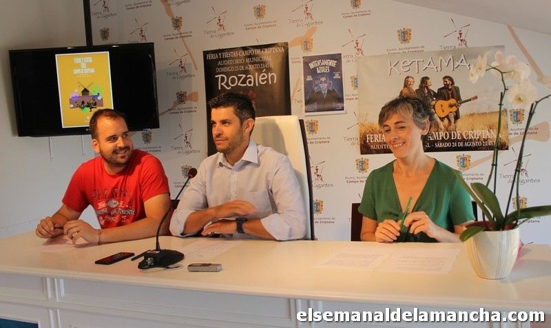 El alcalde de Campo de Criptana, Santiago Lázaro, ha dado a conocer los principales actos y novedades que tendrán lugar en las fiestas patronales de la localidad, en honor al Santísimo Cristo de Villajos, del 23 al 28 de agosto, con una programación “de nivel” y varias novedades. Y lo ha hecho en una rueda de prensa que ha dado junto al concejal de Festejos, Berna Manzaneque, y la concejala de Cultura, Rosana Fernández, a quienes ha agradecido “el inmenso trabajo” realizado estos días para que todo salga bien y a tiempo.