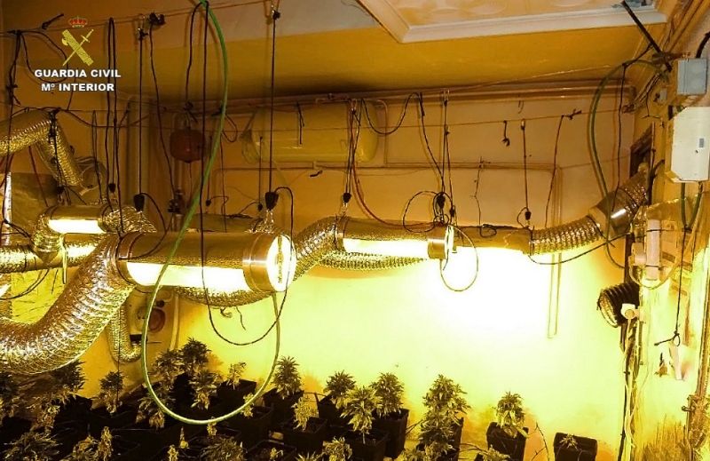 Durante el registro, la Guardia Civil comprobó la existencia de un laboratorio tipo indoor completamente equipado y con un sofisticado sistema de ventilación, de control de humedad y de riego. Además fueron halladas diferentes sustancias y herramientas necesarias para el cultivo, gran cantidad de fertilizantes y productos fitosanitarios.