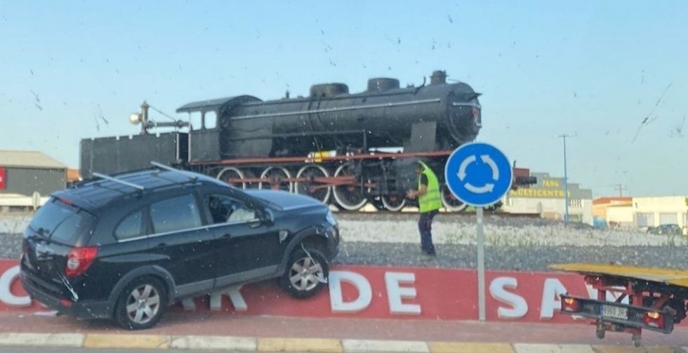 Sin heridos tras chocar y subirse un vehículo a la rotonda de la locomotora de Alcázar