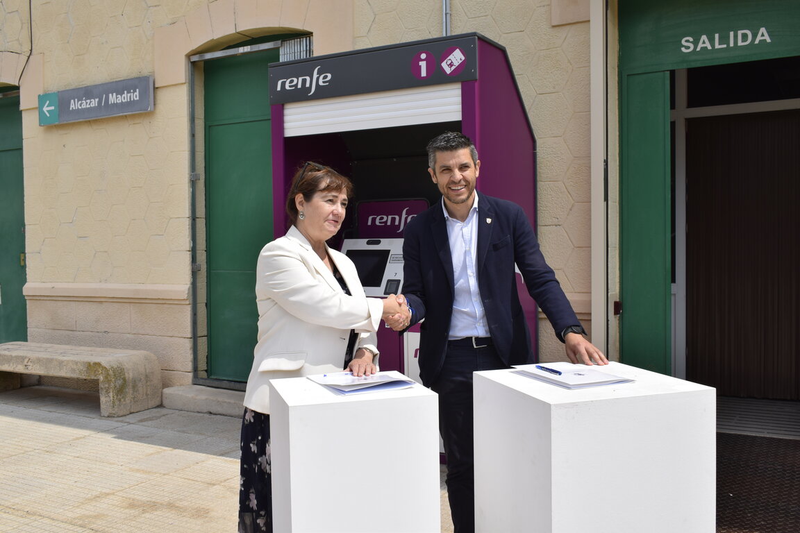 El alcalde de Campo de Criptana, Santiago Lázaro, y la gerente del Área de Patrimonio y Urbanismo de la zona centro de ADIF en Madrid C-LM, Mª Cruz Nieto, han firmado este miércoles el acuerdo de cesión del edificio histórico de la estación del tren, el muelle de carga y una parcela anexa, todo ello hasta 1.700 metros cuadrados, para su rehabilitación y uso cultural. La cesión, por un periodo de 20 años, permitirá transformar este espacio en un nuevo entorno cultural para el municipio, según ha explicado el alcalde, quien ha recordado que esta estación data de 1855.