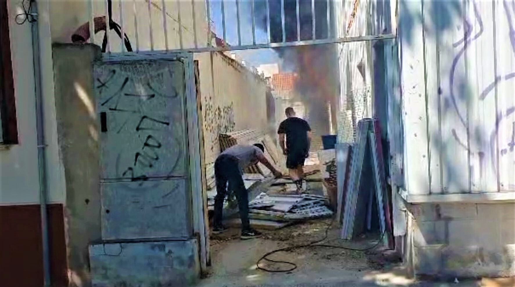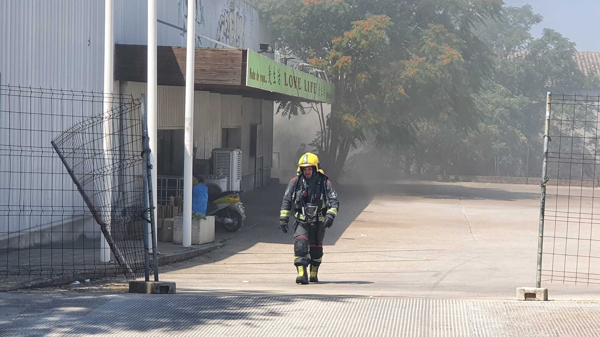extintores disponibles y retirado objetos de plástico y elementos de fácil combustión de la nave, el incendio ha podido quedar sofocado sin consecuencias mayores, sin extenderse a la tienda y sin que haya habido que lamentar daños personales.