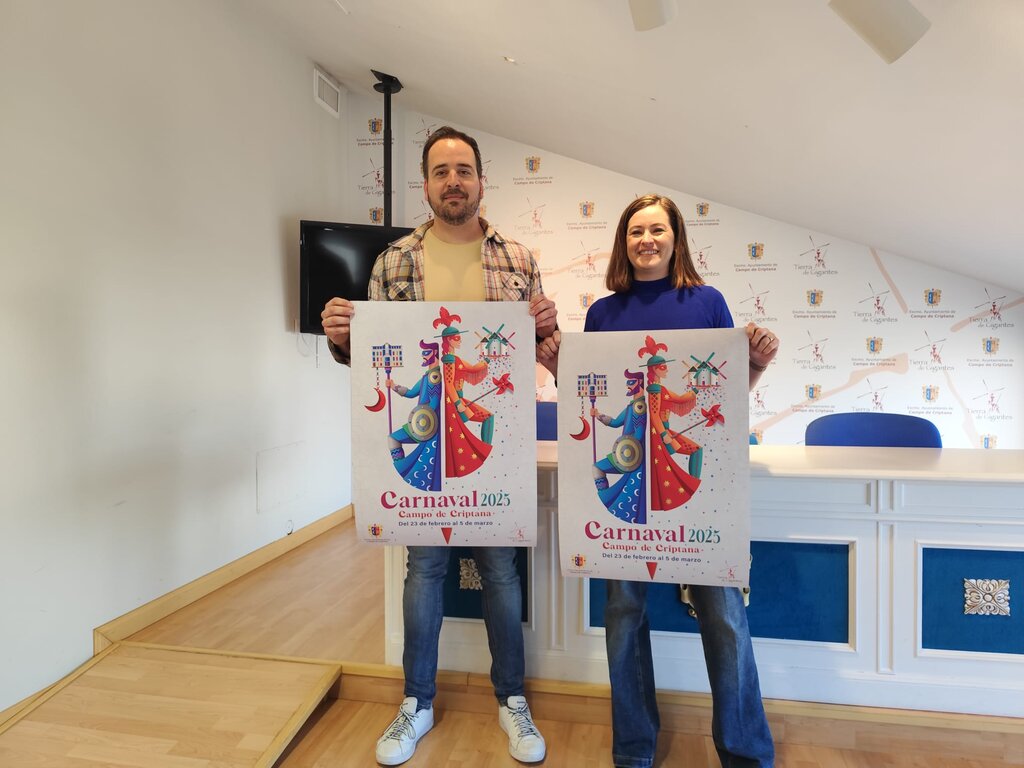 Campo de Criptana arrancará este domingo, 23 de febrero, la programa del Carnaval 2025, unas fiestas que se alargará hasta el día 5 de marzo, Miércoles de Ceniza, y en las que el Ayuntamiento, a través de la Concejalía de Festejos, ha puesto su empeño en que sean intensas para los vecinos y atractivas para los visitantes, con más dinero en premios y subvenciones y con una gran participación de peñas y grupos en los tres desfiles que tendrán lugar en el municipio, tal como ha destacado en la presentación el concejal de Festejos, Berna Manzaneque, que ha estado acompañado por la concejala de cultura, Ana Sánchez.