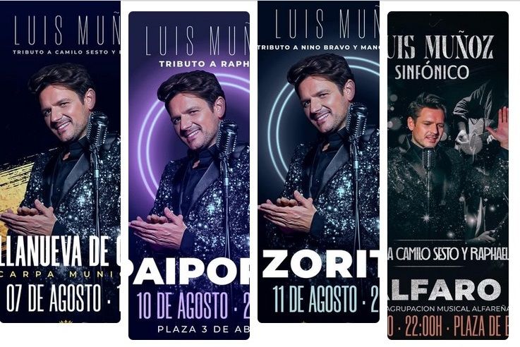 Durante los próximos días de agosto, Luis Muñoz tiene programados más conciertos, el siguiente el día 11 de agosto en Zorita (Cáceres), con un tributo a Nino Bravo y Manolo Escobar, para continuar el día 13 de agosto a las diez de la noche en la Plaza de España de Alfaro (La Rioja) con la Agrupación Musical alfareña que ofrecerán un tributo a Camilo sesto y Raphael.