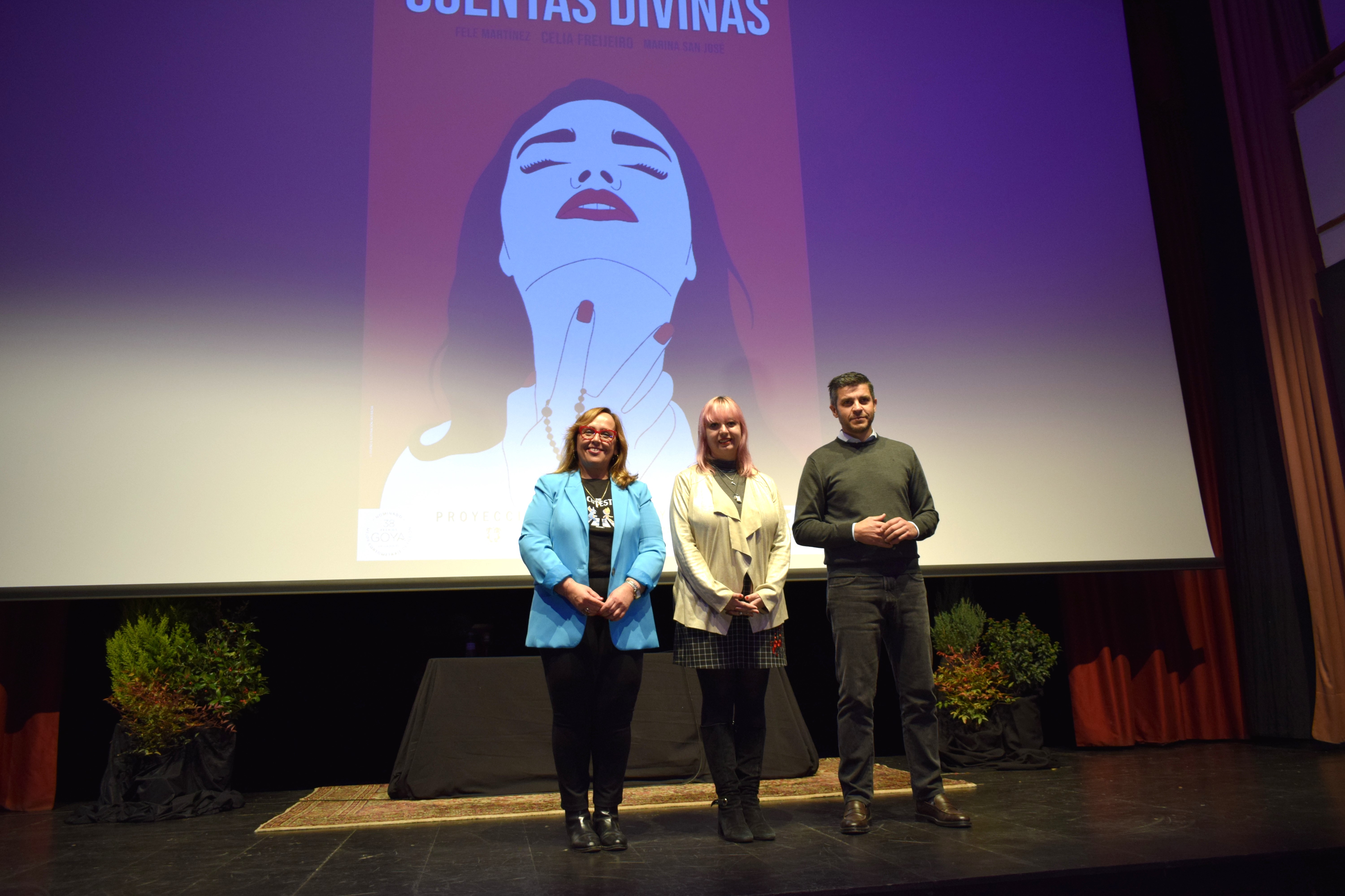 La escritora y guionista criptanense, María Zaragoza, ha presentado este martes, en el Teatro Cervantes del municipio, el cortometraje “Cuentas divinas”, un corto que lleva a las pantallas una historia escrita por Zaragoza y que está dirigida por Eulalia Ramón. Aunque no es el primer guión de la criptanense, sí es el primero que llega al cine con una historia que habla sobre la ansiedad social que genera estar hiperconectados y tener que sufrir todo el tiempo con unas expectativas que generan problemas emocionales, todo ello contado desde el humor negro,