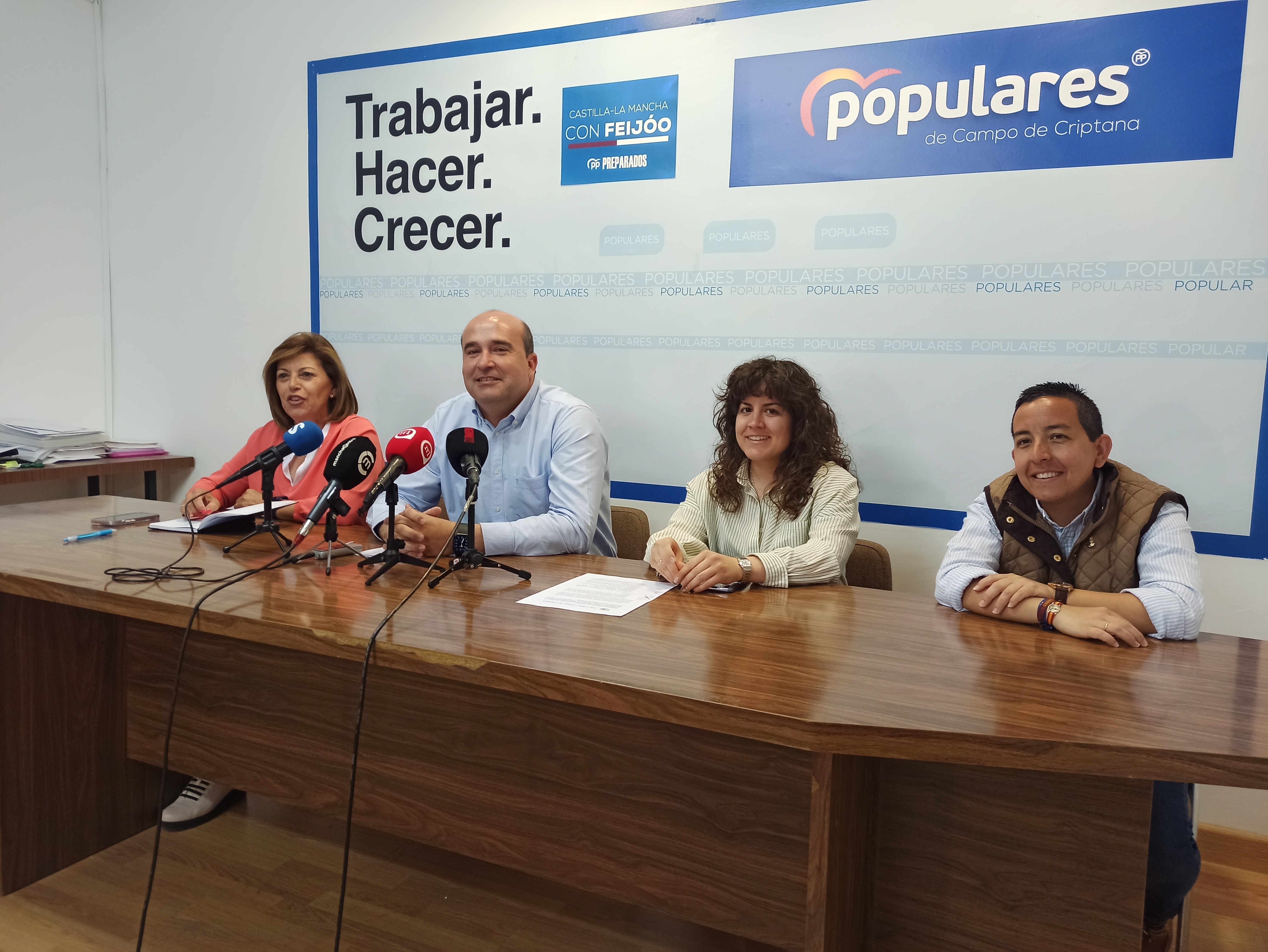 El candidato del Partido Popular a la Alcaldía de Campo de Criptana, Luis maría Lorenzi, acompañado por miembros de su candidatura, Conchi Díaz-Ropero, Sandra Pueblas y Sara Alberca, ha denunciado, en rueda de prensa, las pésimas condiciones e injusticias laborales que están viviendo día a día los policías de la localidad.