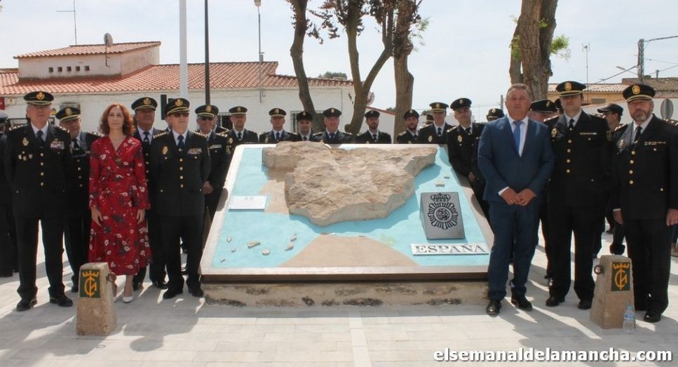 La EATIM de Cinco Casas se ha convertido este jueves en la capital de la Policía Nacional con la celebración de un multitudinario homenaje a este cuerpo ofrecido por el Ayuntamiento de Cinco Casas, aprovechando el 200 aniversario de la Policía Nacional, que será en 2024 y en el que se ha inaugurado una escultura realizada por Vicente Navas Carrera, quien, en una piedra de 2.500 kilos, ha esculpido el mapa de España que se ha instalado en la Plaza del Comercio.