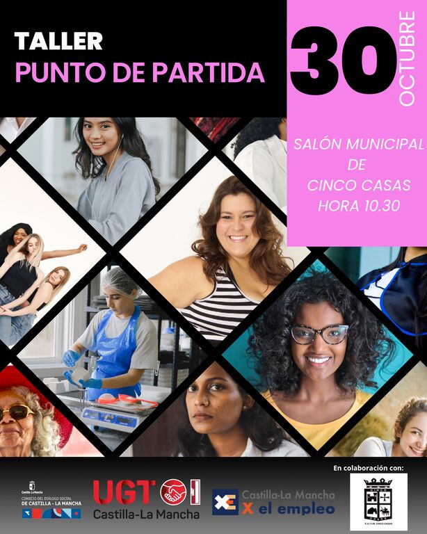 El Salón Municipal de Cinco Casas (Ciudad Real) acoge mañana 30 de octubre a partir de las 10:30 horas un nuevo taller Punto de Partida que, organizado por UGT Castilla-La Mancha, está dirigido a mujeres paradas de larga duración que -tras un periodo de inactividad por cuidados- buscan volver a insertarse en el mercado laboral.