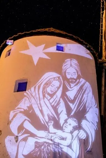 Durante todas las fiestas de Navidad, luces de todos los colores llenan las calles y plazas de Mota del Cuervo, pero este año, como novedad, dos artesanos de la localidad han recreado la escena del nacimiento de Jesús proyectada en el Molino Goethe, que alberga el museo de Austión Tirado.