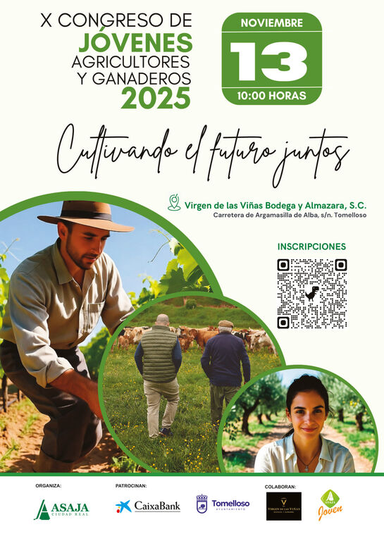 Tomelloso es la sede elegida para la celebración del X Congreso de Jóvenes Agricultores y Ganaderos de la Asociación Agraria-Jóvenes Agricultores (ASAJA) de Ciudad Real. El encuentro tendrá lugar el próximo 13 de noviembre en Virgen de las Viñas Bodega y Almazara, S.C. Se trata de una cita ya consolidada en el calendario de la organización agraria provincial, que reúne a centenares de jóvenes del sector para analizar los retos de futuro, la innovación y las oportunidades de emprendimiento en el medio rural.